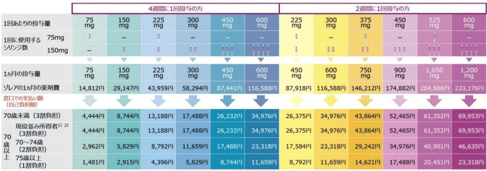 ※1ヵ月分の医療費の支払い額(自己負担額)が一定額を超えた場合、超過分の払い戻しが受けられる制度として「高額療養費制度」があります。ゾレアも投与量によっては「高額療養費制度」の対象となる可能性があります。