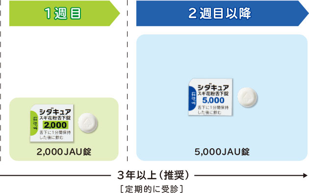 ・治療前に血液検査(総IgE値とスギ特異的IgE値)が必要です。